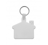 Plastový prívesok v tvare domčeka s kovovým krúžkom.