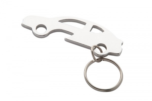 Hliníkový prívesok na kľúče v tvare auta s otváračom na fľaše.