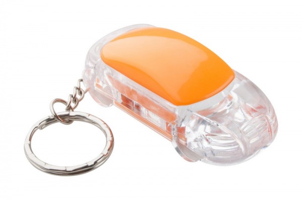 Plastový prívesok na kľúče v tvare auta s 1 LED diódou a kovovým krúžkom, vr. gombíkové batérie.
