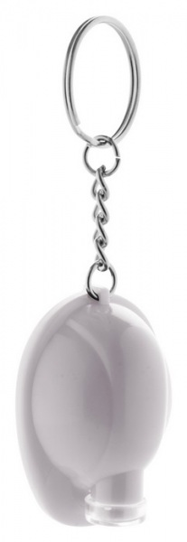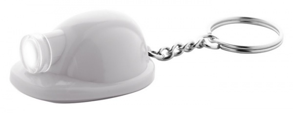 Plastový prívesok na kľúče v tvare prilby s LED svietidlom. S gombíkovou batériou.