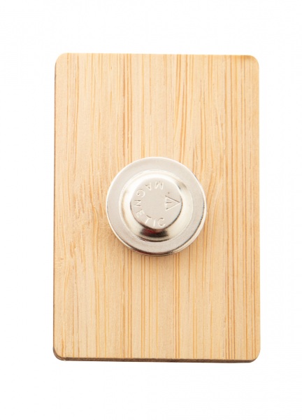 Odznak z bambusovej preglejky s magnetickým pinom.