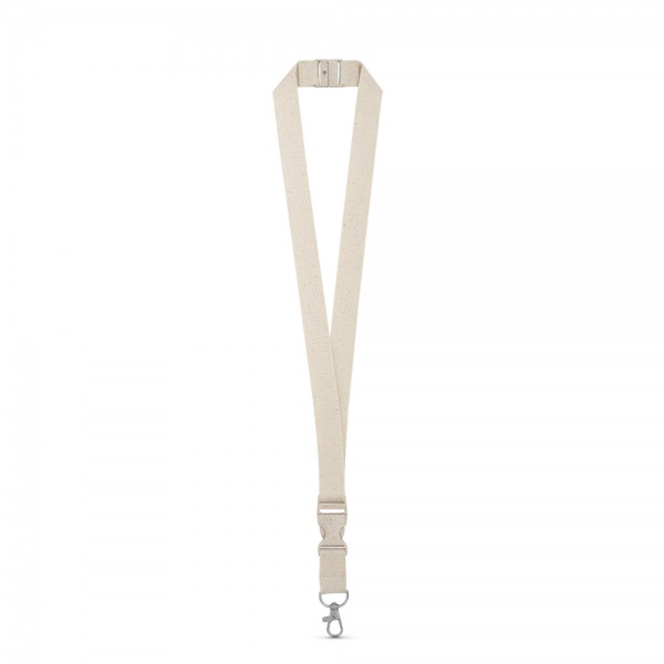 Šnúrka zo 100% bavlny s kovovou karabínou. Odnímateľná spona a bezpečnostný zámok z pšeničnej slamy.20 x 510 mm