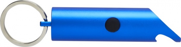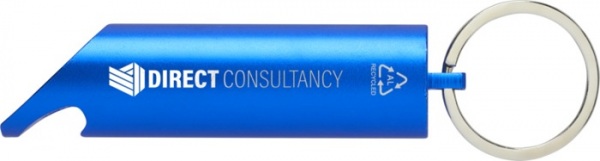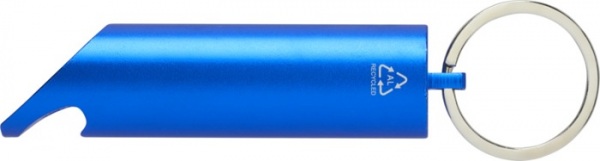 LED kľúčenka s otváračom na fľaše, tlačidlom pre zapnutie/vypnutie a železným krúžkom na kľúče. Je vyrobené z ľahkého a pevného 63% RCS certifikovaného recyklovaného hliníka. Dodáva sa s tromi batériami LR44.