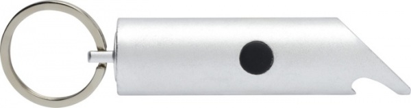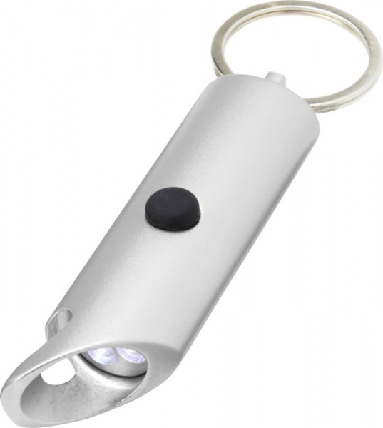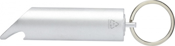 LED kľúčenka s otváračom na fľaše, tlačidlom pre zapnutie/vypnutie a železným krúžkom na kľúče. Je vyrobené z ľahkého a pevného 63% RCS certifikovaného recyklovaného hliníka. Dodáva sa s tromi batériami LR44.