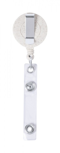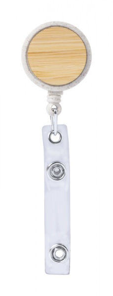 Ekologický držiak z pšeničnej slamy z plastu a bambusu so zapínaním na cvoky, teleskopickou šnúrou a kovovou sponou.