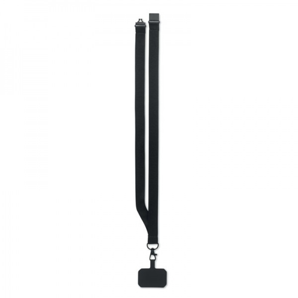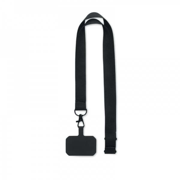 Šnúrka na krk z polyesteru s držiakom na telefón a bezpečnostnou prackou. Šírka 2 cm.