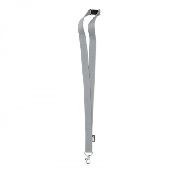 Šnúrka na krk z RPET s karabínkou a bezpečnostnou poistkou. Šírka 2 cm. Sublimačná potlač je možná iba na biely produkt.
