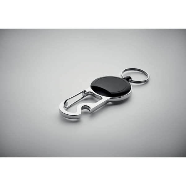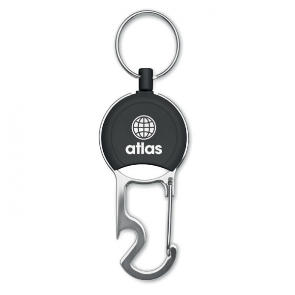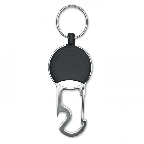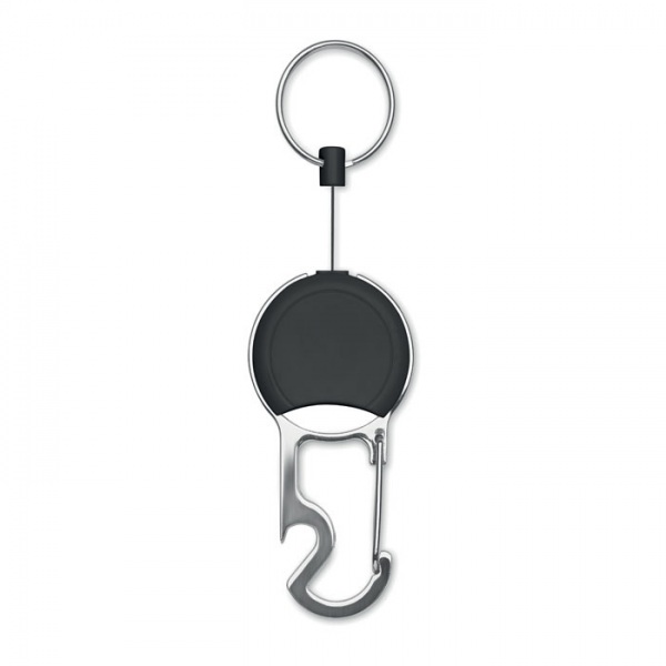 Výsuvný držiak na odznaky z ABS s klipom, krúžkom na kľúče a otváračom na fľaše.