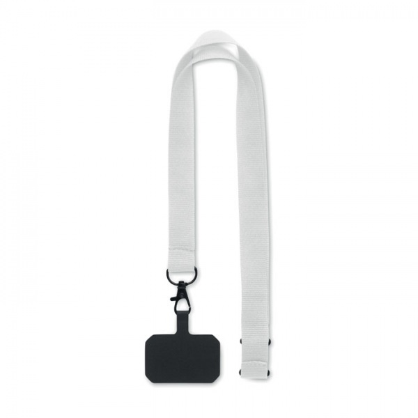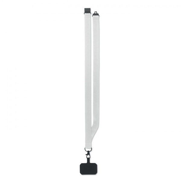 Šnúrka na krk z polyesteru s držiakom na telefón a bezpečnostnou prackou. Šírka 2 cm.