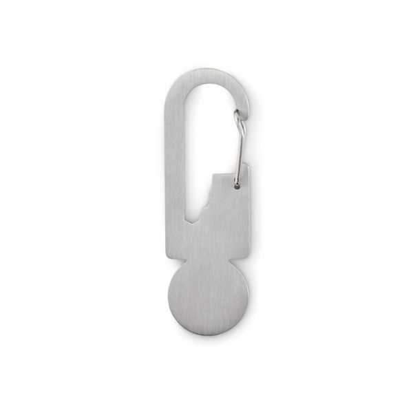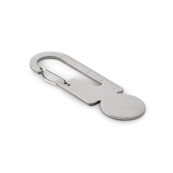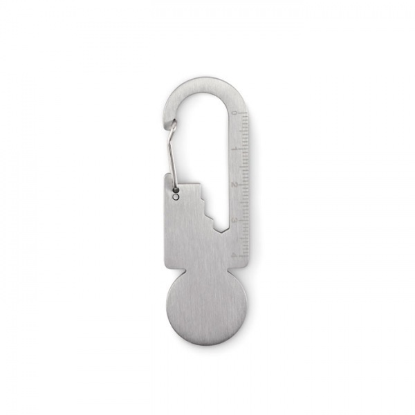 Žetón do vozíka s krúžkom na kľúče z recyklovanej nehrdzavejúcej ocele s multifunkčným nástrojom vrátane otvárača na fľaše, pravítka a šesťhranného kľúča (M1/M2/M3/M4).