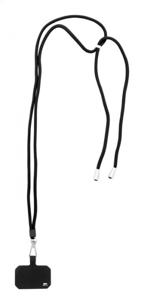 RPET lanyard s nastaviteľnou dĺžkou pre držiak na mobil s kovovou karabínou a vložkou na telefón.