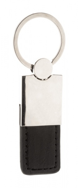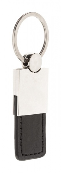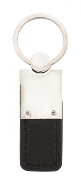 Prívesok na kľúče z kovu a PU kože. V kraftovej papierovej krabičke.