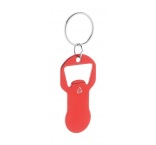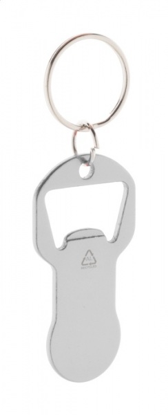 Prívesok na kľúče s otváračom na fľaše z recyklovaného hliníka so žetónom do nákupného vozíka.