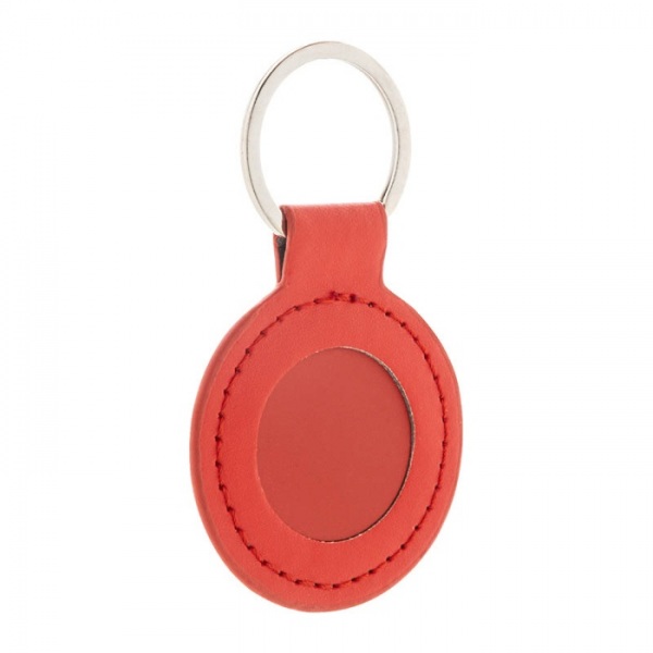 Okrúhly prívesok na kľúče z recyklovanej PU kože s kovovým krúžkom a nerezovou doštičkou s logom a pogumovanou úpravou. So špeciálnym povrchom na zrkadlové laserové gravírovanie.