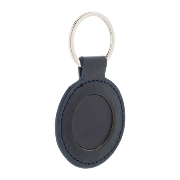 Okrúhly prívesok na kľúče z recyklovanej PU kože s kovovým krúžkom a nerezovou doštičkou s logom a pogumovanou úpravou. So špeciálnym povrchom na zrkadlové laserové gravírovanie.