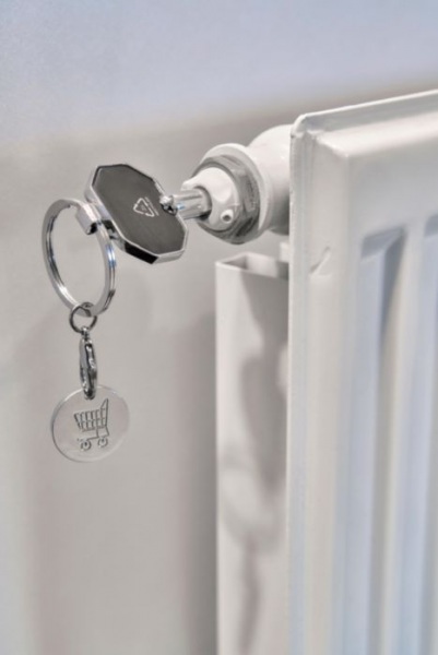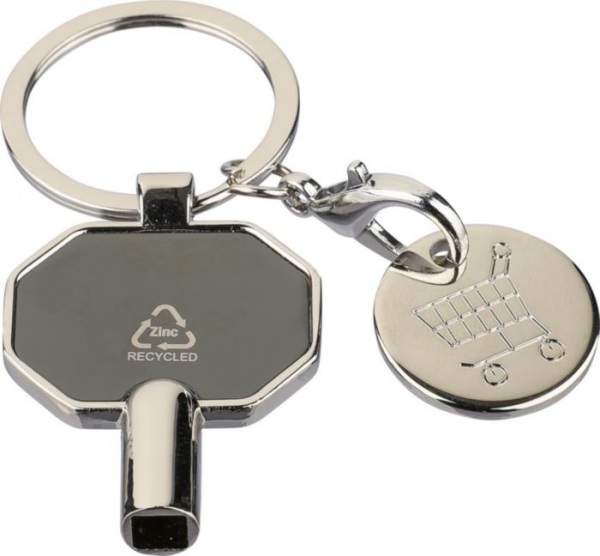 Kľúčenka z recyklovanej zinkovej zliatiny so žetónom. Súčasťou balenia je štvorcový kľúč 5 × 5 mm, štandardný v Európe na odvzdušnenie radiátora. Dodáva sa s pevným kovovým krúžkom na kľúče. Balené v hnedej kartónovej obálke s ilustráciou.