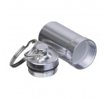 Prívesok na kľúče s vonkajším povrchom z nehrdzavejúcej ocele a vnútorným plastom. Ideálna na bezpečné uloženie malých predmetov na cesty.