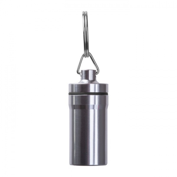 Prívesok na kľúče s vonkajším povrchom z nehrdzavejúcej ocele a vnútorným plastom. Ideálna na bezpečné uloženie malých predmetov na cesty.