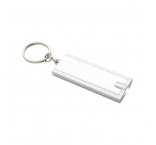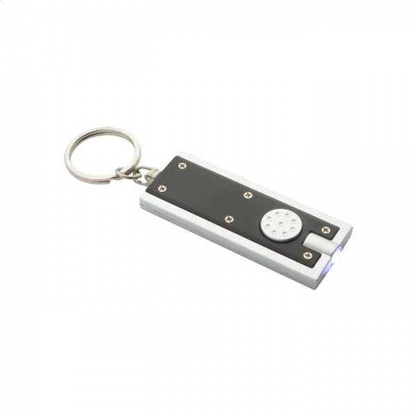 Prívesok na kľúče z recyklovaného ABS materiálu s LED svietidlom a kovovým krúžkom. S gombíkovými batériami.