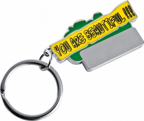 Kovová kľúčenka s farebným lakovaním vpredu.
