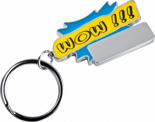 Kovová kľúčenka s farebným lakovaním vpredu.