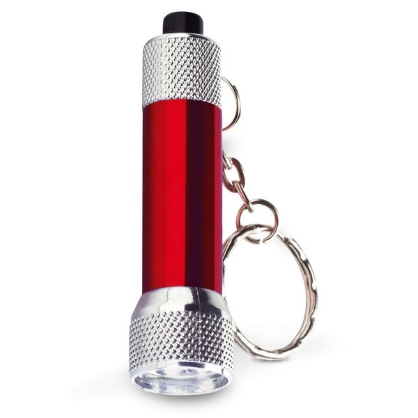 Hliníková kľúčenka s 3 LED svetlami. Kľúčenka obsahuje 4 batérie LR44.