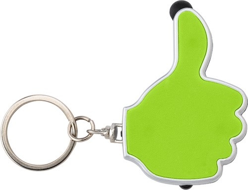 Stylus v tvare dlane so vztýčeným palcom (materiál: plast ABS), vhodný na dotykové obrazovky v kombinácii s 1 LED diódou a oceľovým krúžkom na kľúče. Batérie v cene.