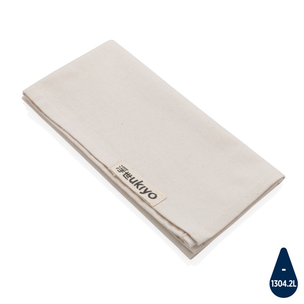Moderné látkové obrúsky z kolekcie Ukiyo, ktoré je možné využiť aj ako štýlové prestieranie. Vyrobené zo 180g recyklovanej bavlny. Vrátane skenovateľnej zložky AWARE™ garantujúcej obsah recyklátu. Výrobou bolo usporené 1304,2 litrov vody. Z výťažku každéh