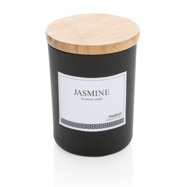 Prémiová vonná sviečka Ukiyo pre príjemné prevoňanie domova a navodenie útulnej atmosféry. Sviečka je v elegantnom pohári s bambusovým viekom. Jazmínová vôňa.