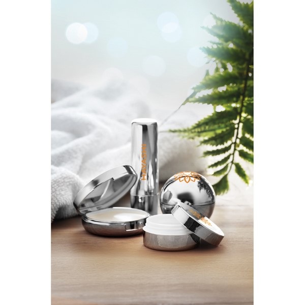 Prírodný balzam na pery v obale s metalickým UV vzhľadom.