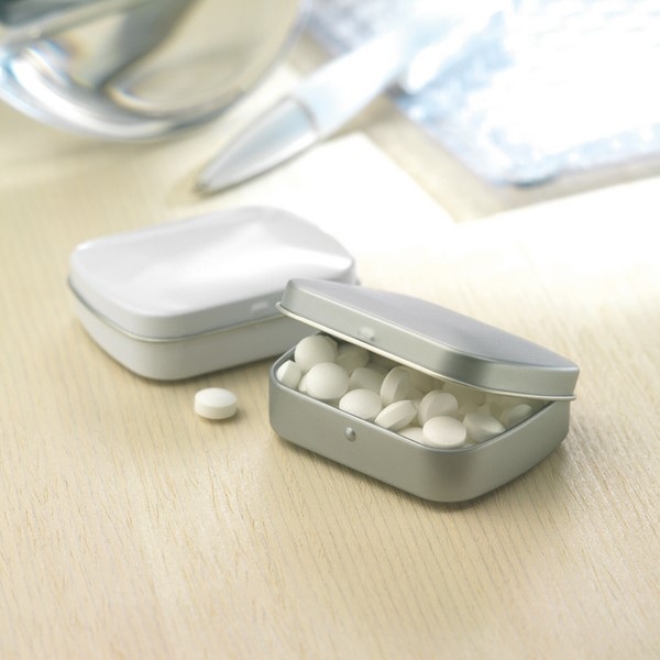 Mentolové cukríky v plechovom puzdre (cca 28 g).