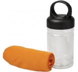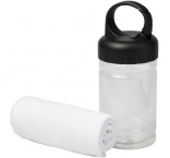 Savý a rýchloschnúci chladiaci uterák vyrobený zo silného a odolného polyesteru na udržanie chladu počas cvičenia. Dodáva sa v PET nádobe s rukoväťou na prenášanie so vstavanou karabínou. Veľkosť: 30 x 80 cm