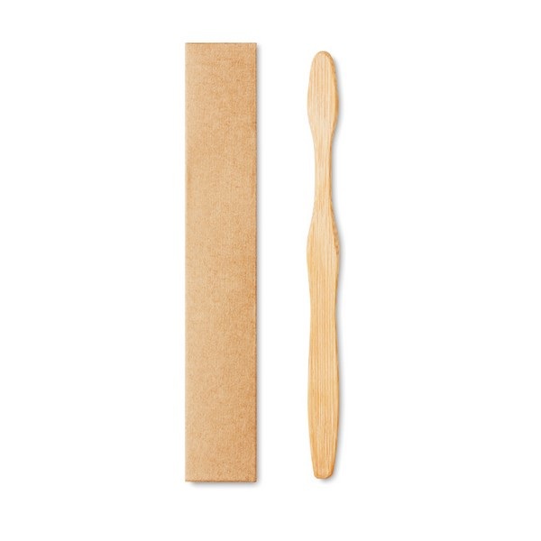 Bambusová zubná kefka v kartónovej krabičke.