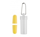 Farebné špunty do uší z EVA materiálu v transparentnej plastovej krabičke s kovovým retiazkou.