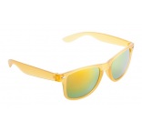 Plastové slnečné okuliare s priesvitným rámom, zrkadlovými sklami a ochranou UV 400.
