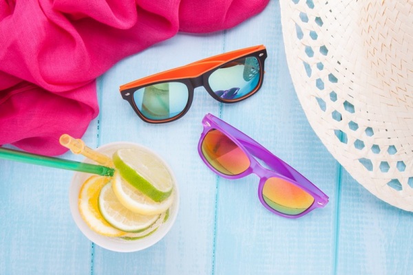 Plastové slnečné okuliare s dvojfarebnými obrúčkami, metalickými šošovkami a UV 400 ochranou.