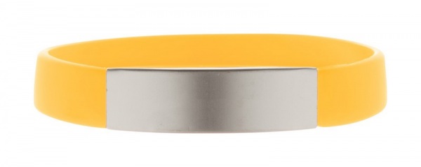 Silikónový náramok s hliníkovou striebornou plôškou.