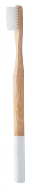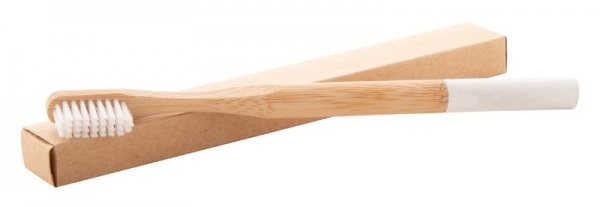 Kefka na zuby pre dospelých z bambusu a farebnými nylonovými štetinami a farebným koncom držadla. V Kraftovej papierovej škatuľke.