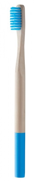 Kefka na zuby pre dospelých z bambusu a farebnými nylonovými štetinami a farebným koncom držadla. V Kraftovej papierovej škatuľke.