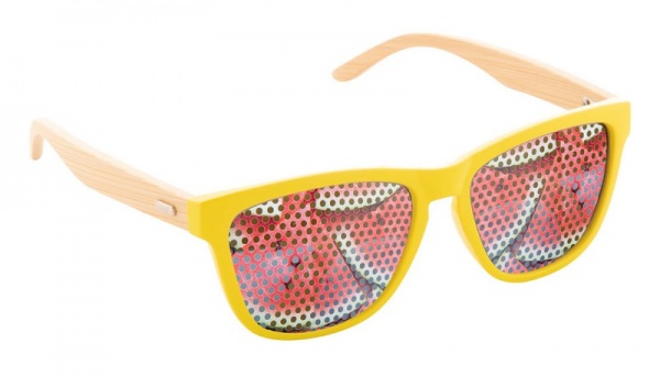 Slnečné okuliare s farebnými plastovými obrúčkami a bambusovými nožičkami. S ochranou UV 400. V Kraftovej papierovej škatuľke.