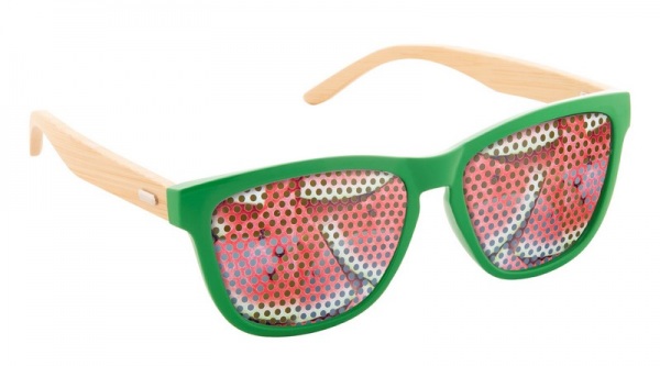 Slnečné okuliare s farebnými plastovými obrúčkami a bambusovými nožičkami. S ochranou UV 400. V Kraftovej papierovej škatuľke.