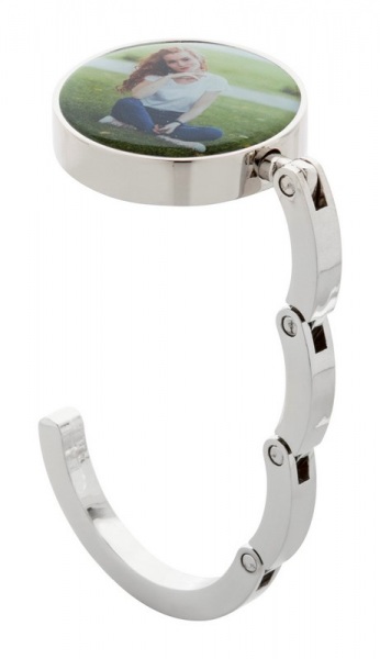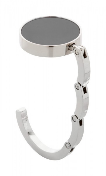 Skladací kovový vešiačik na tašku. Dodávaný v čiernej darčekovej krabičke.
