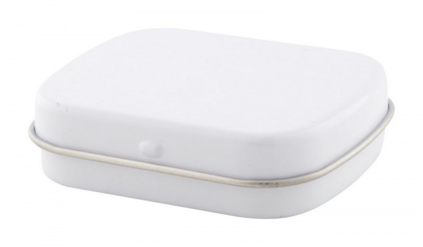 Obdĺžniková plechová škatuľka s 25 gr mintových cukríkov bez cukru.