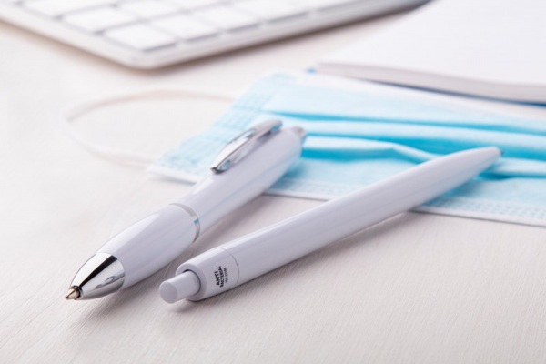 Plastové guľôčkové pero s antibakteriálnym telom Obsahuje prísadu nano striebra, ktorá zabraňuje rastu baktérií na tele pera So stiskacím mechanizmom a modrou náplňou.