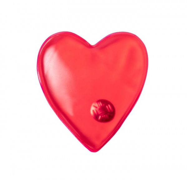 Opakovane použiteľný zohrievací vankúšik v tvare srdca.