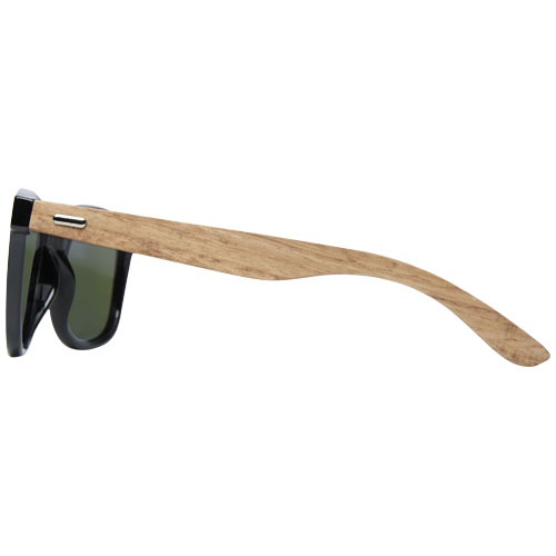 Špičkový rám je leštený a lakovaný a je vyrobený z recyklovaného PET plastu. Ľahké obrúčky komfortného tvaru sú vyrobené z dubového dreva. Šošovky sú zrkadlovo modré a sú polarizované, eliminuje sa tak odraz slnečného svetla.