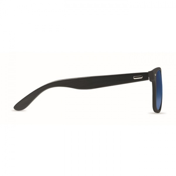 Slnečné okuliare s čierno potiahnutými bambusovými nožičkami a zrkadlovými sklami. Ochrana UV400.