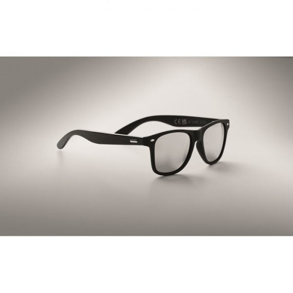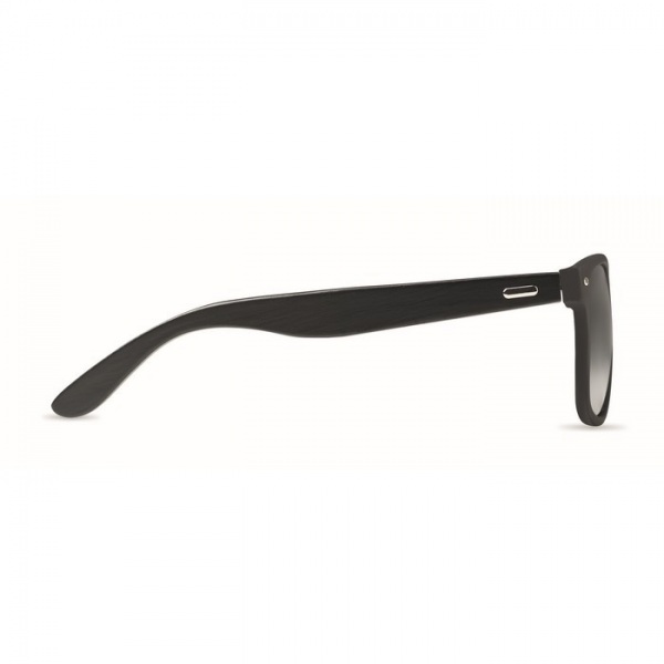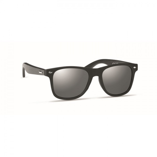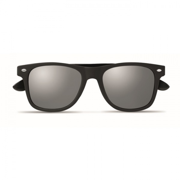 Slnečné okuliare s čierno potiahnutými bambusovými nožičkami a zrkadlovými sklami. Ochrana UV400.
