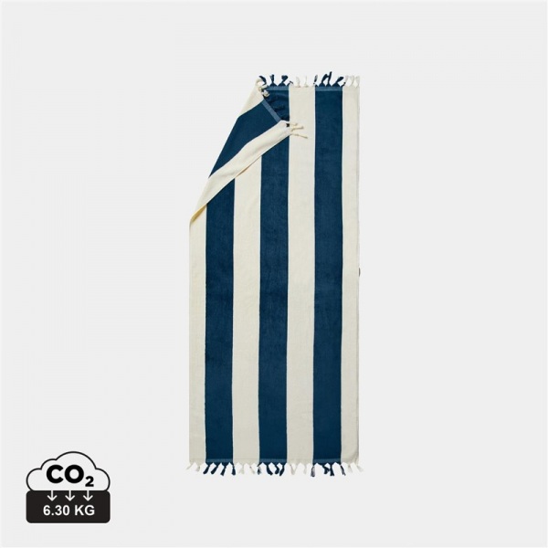 Luxusná plážová osuška so strapcami na užších koncoch. Ideálna na pláž alebo k bazénu. Pevnosť 450 g/m2. Vyrobené v Indii zo 100% organickej balvny. Certifikované GOTS.