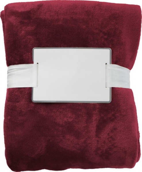 Fleecová deka (280 gr/m?) s bielou stuhou a lepenkou. Veľkosť: 120 x 150 cm.